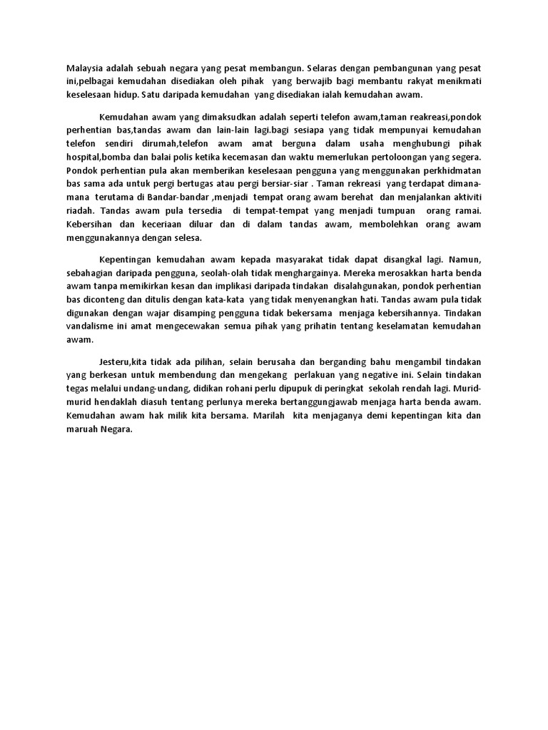 Vandalisme membawa maksud perbuatan membinasakan atau merosakkan harta benda awam atau persendirian menuru. Media massa hari ini mempunyai peranan yang besar dalam memberi kesedaran kepada masyarakat akan pentingnya memelihara dan memanfaatkan kemudahan awam yang telah disediakan. 6 - Menjaga keselamatan harta benda awam.