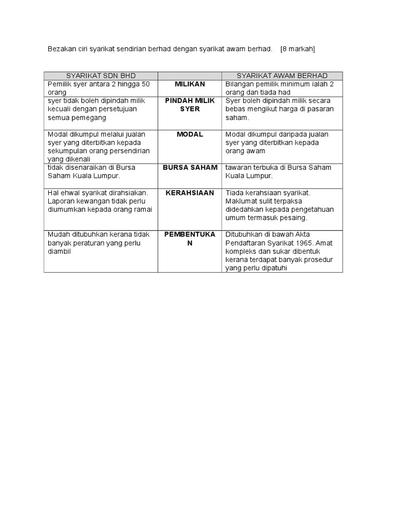 Bezakan Ciri Syarikat Sendirian Berhad Dengan Syarikat Awam Berhad Pdf