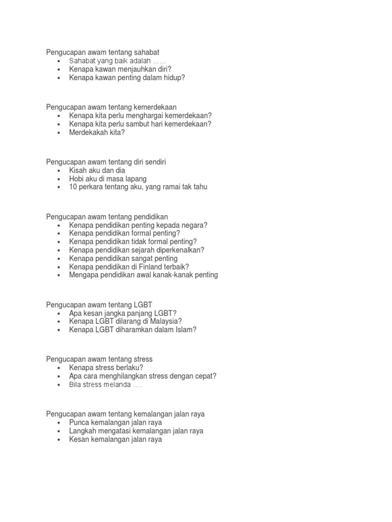 Kami ada menyediakan beberapa contoh tajuk pengucapan awam yang boleh dibuat secara spontan. Sidang Hadirin yang dirahmati Allah sekalian. About Press Copyright Contact us Creators Advertise Developers Terms Privacy Policy Safety How YouTube works Test new features Press Copyright Contact us Creators.